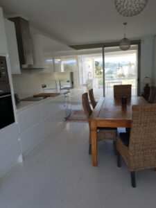 El interior del Ático de Lujo en Port des Torrent , de la vivienda abarca aproximadamente 130 m² de superficie útil. Cada rincón ha sido diseñado para aprovechar la luz natural que inunda la propiedad gracias a su orientación y sus grandes ventanales.