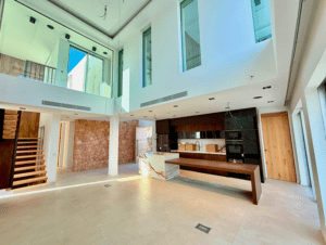 Uno de los elementos arquitectónicos más potentes de esta vivienda es la doble altura en el salón. Este recurso de diseño no solo aporta una estética majestuosa, sino que permite una entrada de luz natural constante, creando un ambiente aireado y sofisticado que conecta visualmente las plantas de la casa.