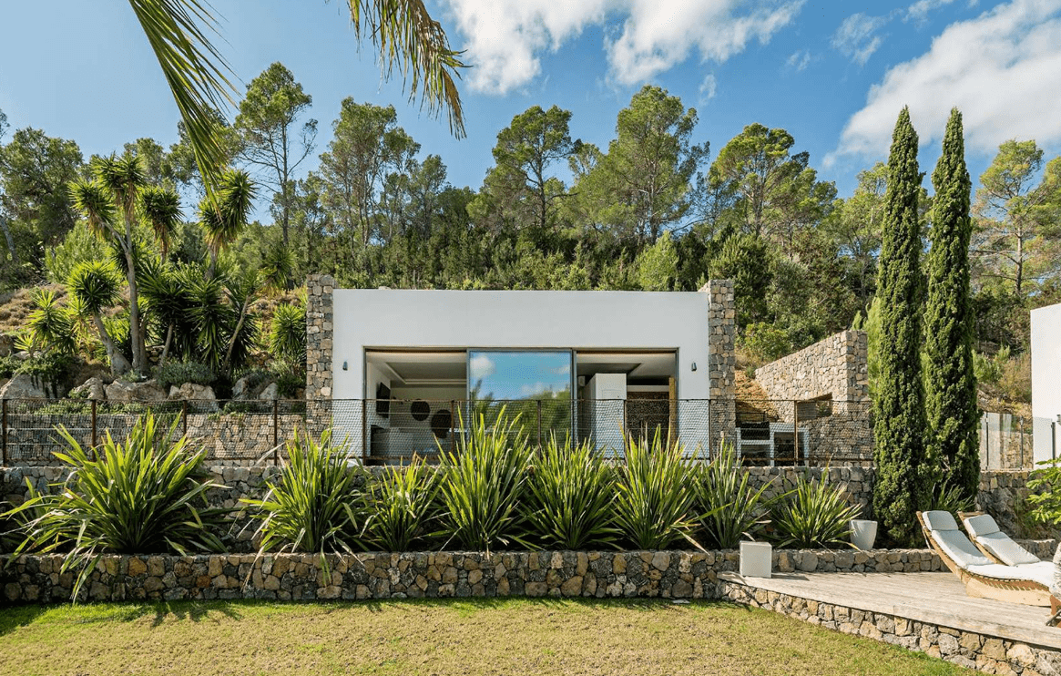 El diseño exterior es lo que termina de consolidar el retorno de inversión de esta propiedad. La parcela ofrece una integración perfecta con el paisaje ibicenco.